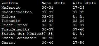 Wir haben den Stufenumfang in Evendim stark gestrafft. Statt die Stufen 27 bis 50 umfasst er nun die Stufen 30 bis 40. Zudem haben wir am Koloss und auf der Straße der Könige zwei neue Zentren hinzugefügt.