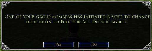 Um Missbrauch durch die Anführer der Gefährtengruppen vorzubeugen, die durch den Instanzen-Finder zusammengefunden haben, können Anführer solcher Gefährtengruppen nicht einfach Spieler entlassen, die Plünderregeln ändern oder die Qualitätsschwelle ändern. Mit Update 6 haben wir eine Methode eingeführt, mit der die gesamte Gefährtengruppe durch Abstimmen gemeinsam über diese Dinge entscheiden kann.