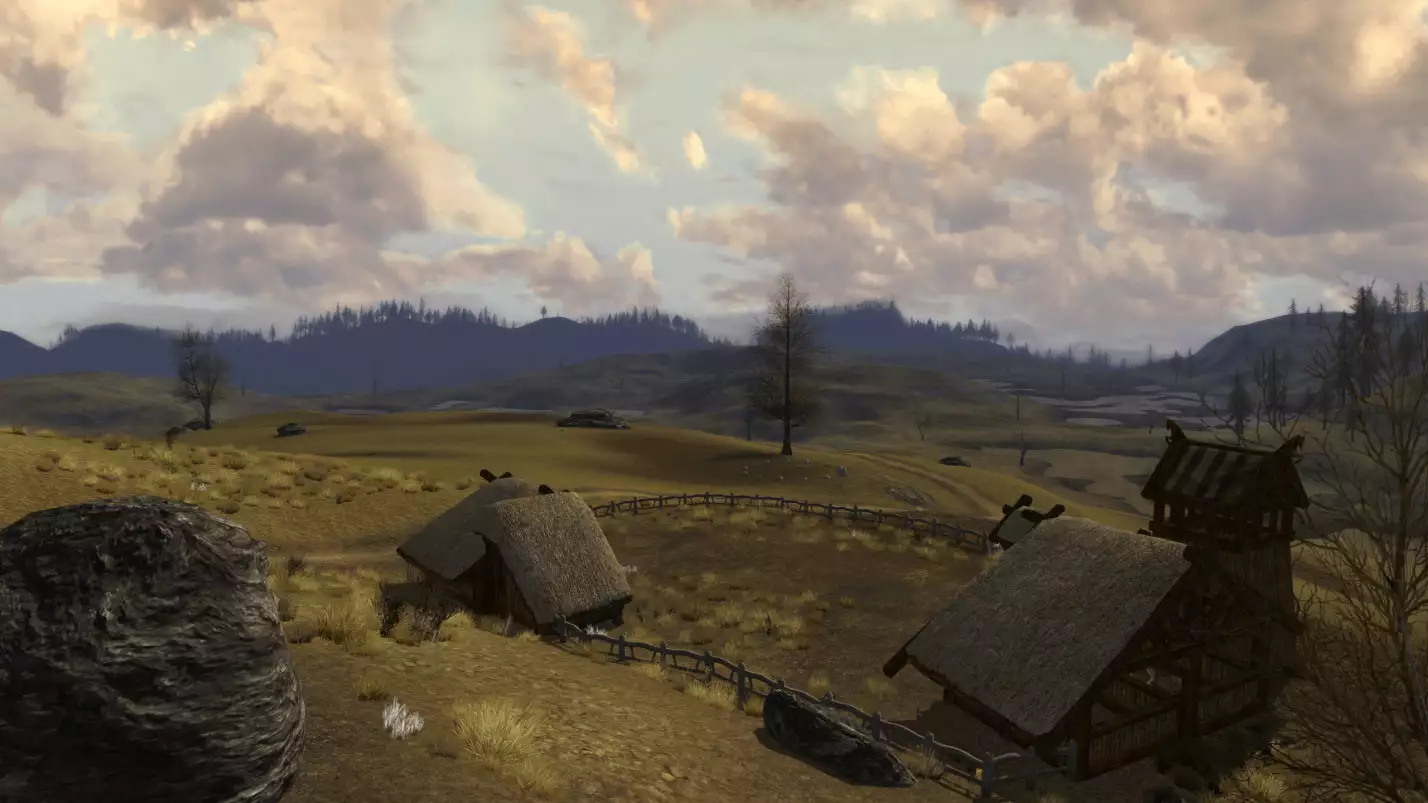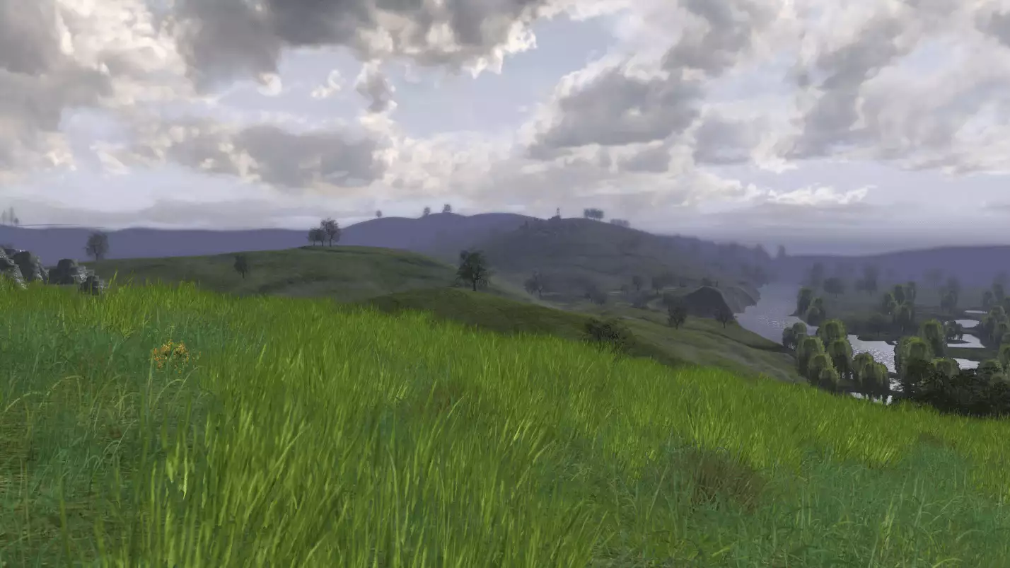 Es brauchte eine geraume Weile und viel Feinarbeit an unserer Software für die Landschaftserstellung (und, zugegeben, auch einige Flüche), um die Konturen der Mark herauszuarbeiten, damit alles so zusammenpasste, wie es Tolkien mehr oder weniger genau beschrieben hatte - aber nun haben wir es, so glaube ich, geschafft. (Ich habe die gesamte Mark in ihren Grundzügen entworfen, weil eines zum anderen passen und sich nahtlos anschließen muss, wenn man später keine bösen Überraschungen erleben will, außerdem soll man ja etwas jenseits des Entwasser-Flusses sehen können). Ihr könnt von einem Ende Ost-Emnets zum anderen reiten, in jede Richtung, ohne befürchten zu müssen, plötzlich und unerwartet mitsamt Eurem Kriegsross von einer steilen Klippe zu fallen. Ihr könnt auch dem Großen Fluss bis nach Amon Hen folgen, den Ausblick vom Sitz des Sehens genießen, der so majestätisch und erhaben ist, wie Ihr ihn Euch vorgestellt habt, und dann dem Weg Merrys und Pippins die Klippen des Ostwalls hinunter nachgehen, bis Ihr auf die Ebenen kommt.